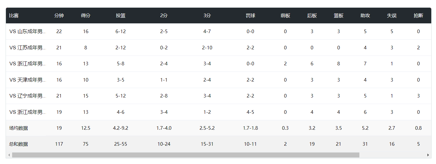 在本届全运会上,赵睿的表现可圈可点。他场均出场19分钟,能够拿到12.5分、5.2次助攻、3.5个篮板、0.8次抢断和0.2次盖帽,命中率达到了45.5%,三分命中率更是高达48.3%。杜锋指导对他的使用十分谨慎,生怕他遭遇伤病,毕竟赵睿对于广东男篮来说,可是不可或缺的核心球员。