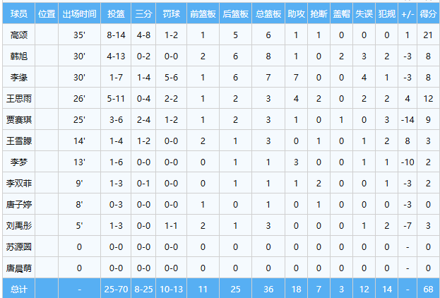 四川女篮的三大王牌球员在总决赛中集体隐身,令人大跌眼镜。首先是国字号球员李缘,全场首发出战30分钟,7投仅1中,通过罚球得到8分,攻守表现不如老将杨力维和伤愈归来的武桐桐。其次,韩旭发挥失常,全场出战30分钟,13投4中,得到8分8篮板2盖帽3失误,被郑薇教练的重点夹击限制得死死的。最后,李梦的发挥更是让人意外,全场替补出战13分钟,6投1中,仅得到2分1篮板3助攻1失误,效率值-10排名全队倒数第二。