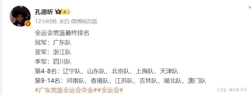2025年男篮全运会决赛尘埃落定,广东队以36分的绝对优势击败浙江队,成功登顶冠军宝座,这也是广东队队史第三次斩获全运会男篮冠军。随着广东队夺冠,本届全运会男篮最终排名正式揭晓:广东队以全胜战绩(6胜0负)稳居榜首,浙江队紧随其后位列第二,四川队在季军战中力克卫冕冠军辽宁队获得铜牌,辽宁队则爆冷跌至第四名。