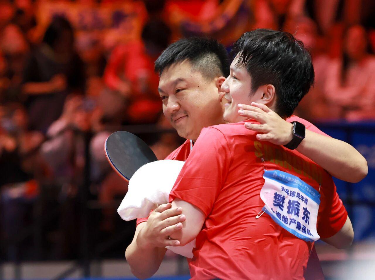 谈及代表上海队参赛的感受,樊振东感慨道:“这个备战周期我遇到了伤病和心态上的低谷,感谢上海队在赛前对我的理解与支持,让我能以更好的状态面对全运会。”他特别强调:“能够为上海代表团夺得金牌,与团队共享这一刻,我感到非常开心和自豪。”
