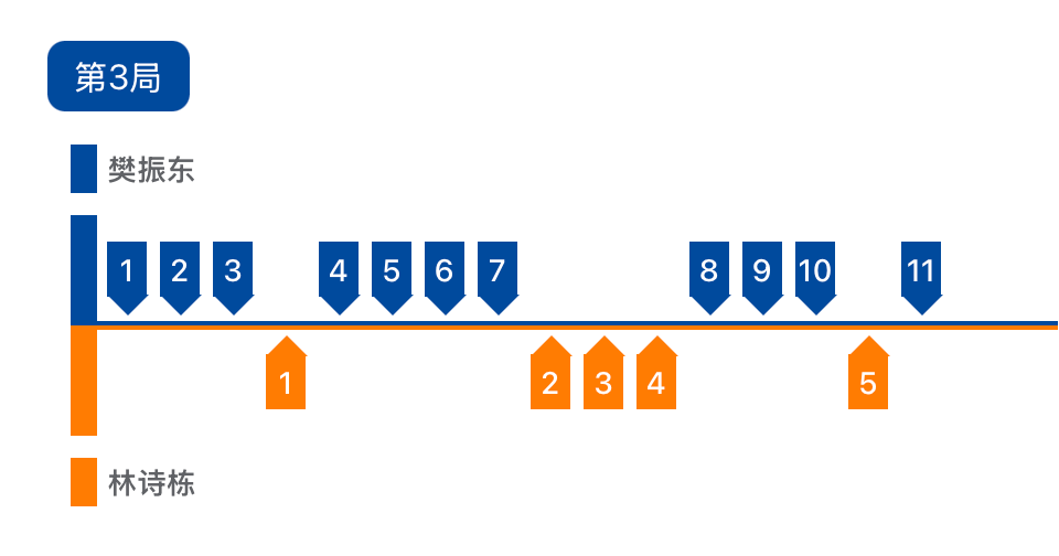 首局比赛呈现戏剧性转折。林诗栋凭借凌厉攻势取得9比4领先,但樊振东迅速调整战术,通过精准落点控制连得7分,以11比9上演惊天逆转。次局双方展开拉锯战,林诗栋在关键分处理上更胜一筹,11比8扳平大比分。第三局成为比赛转折点,樊振东以7比1开局奠定优势,11比5重新取得领先。