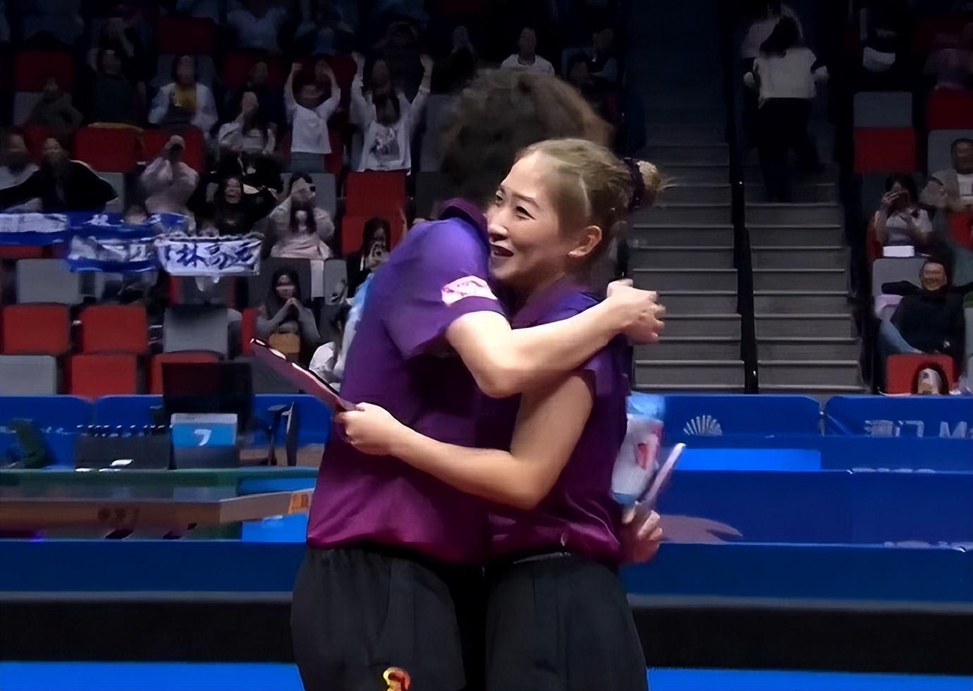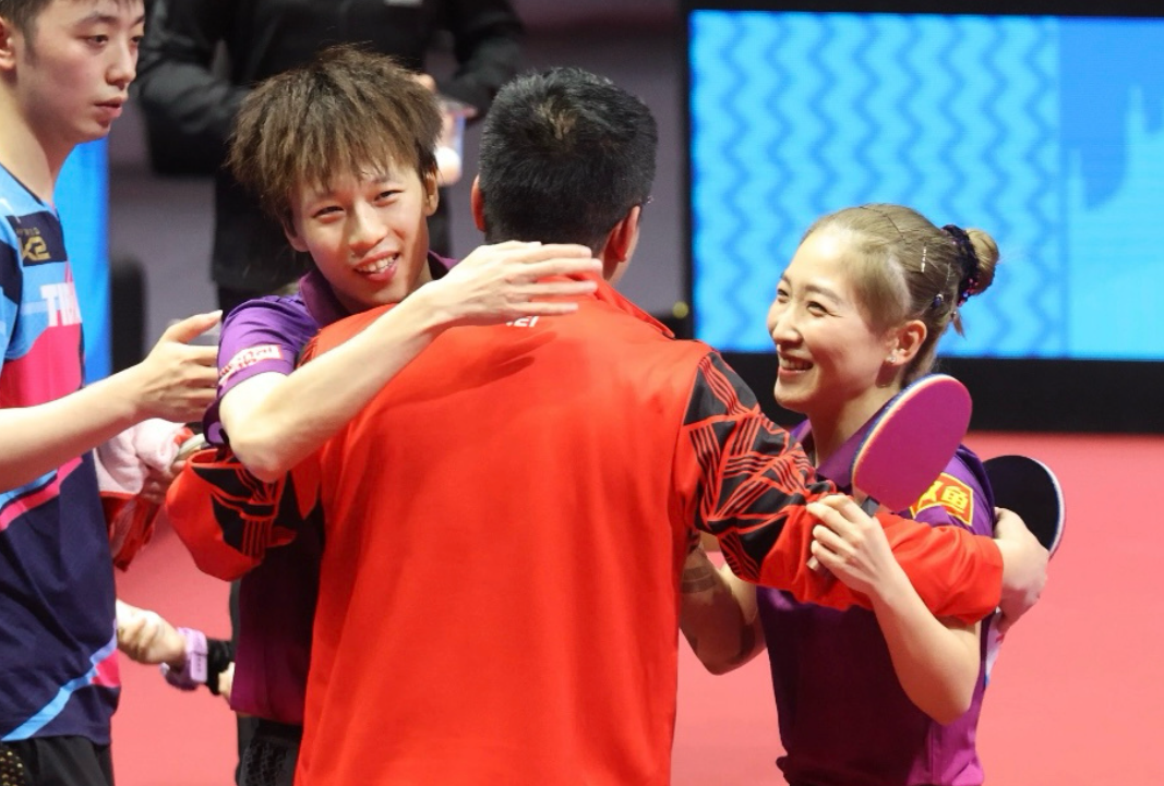 赢球之后的刘诗雯和林高远都激动地挥拳庆祝。刘诗雯还与林高远、张超教练紧紧拥抱,共同分享这份来之不易的胜利喜悦。最后,刘诗雯微笑着向现场观众挥手致意,她的笑容依旧那么甜美,仿佛又回到了那个青春洋溢的年代。这位又美又能打的国乒女神,在最后一次出现在混双赛场时,用一场完美的比赛为自己的职业生涯画上了圆满的句号。