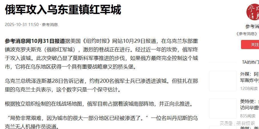 11月初,俄军在乌东战略要地红军城完成对乌军四个旅的合围行动,这场被军事专家称为'现代版孙膑赛马'的战役,彻底颠覆了传统地面战的认知模式。乌军精心构筑的'天然堡垒'为何在72小时内土崩瓦解?基辅当局为何要动用国家机器封锁前线真相?让我们通过战场细节还原这场改变俄乌冲突走向的关键战役。