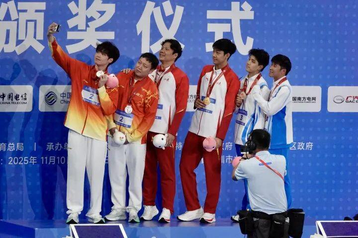 值得一提的是,在上午进行的预赛中,浙江队派出了吴晟恺/孙杨/洪金权/谢心忱的组合,这也充分展示了浙江游泳梯队建设的完善和板凳的厚度。按照规则,参加预赛的选手同样获得金牌,因此在男子4×100米自由泳接力项目上,浙江队共有8人次站上了最高领奖台。