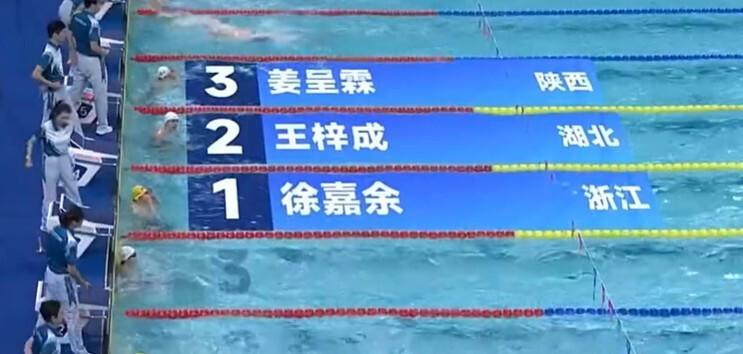 半决赛展现极佳状态的徐嘉余,在决赛中延续强势表现。从第4泳道出发的他,出发反应时为0.52秒,出水后迅速建立领先优势。途中游阶段,徐嘉余的划水效率极高,甚至一度触碰到象征世界纪录的红色标识线。后半程冲刺阶段,他全力以赴,最终以24秒40的成绩触壁,虽未能刷新自己刚创造的全国纪录,但这一成绩仍领先其他选手明显。