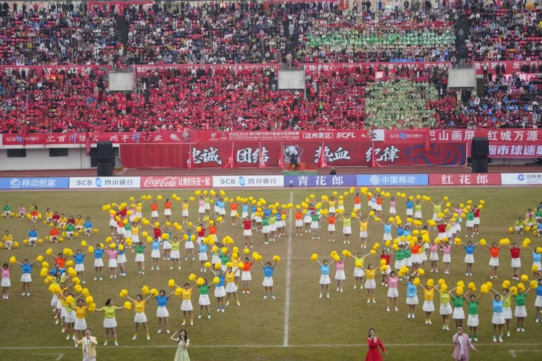 开场表演《龙腾狮跃·贺川超》《巴山“丰”暴·嗨达州》《达城逐梦·绽芳华》等节目,更是点燃了全场热情。数万名球迷用最真挚的呐喊,为家乡球队注入无穷动力,共同期待着这场精彩对决的到来。