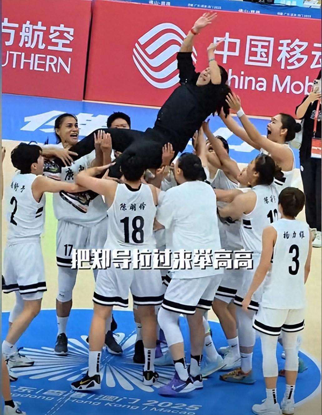 继广东男篮在全运会夺冠后,昨晚广东女篮也成功登顶,她们在决赛中掀翻了拥有豪华阵容、内线优势明显的四川队,站上了最高领奖台。广东队内一片欢腾,队员们将主教练郑薇高高抛起,用这种热烈的方式庆祝胜利。