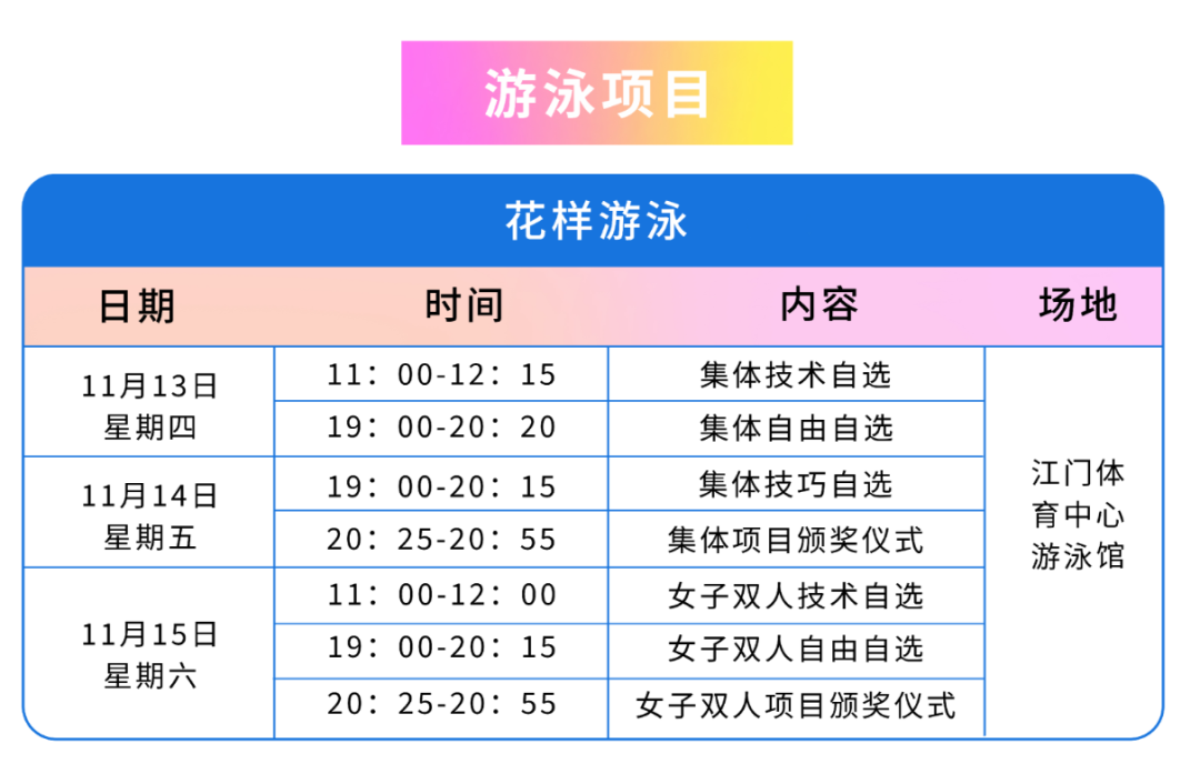 【花样游泳比赛日程安排】