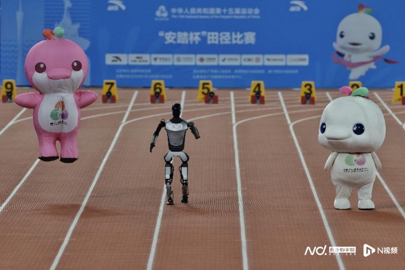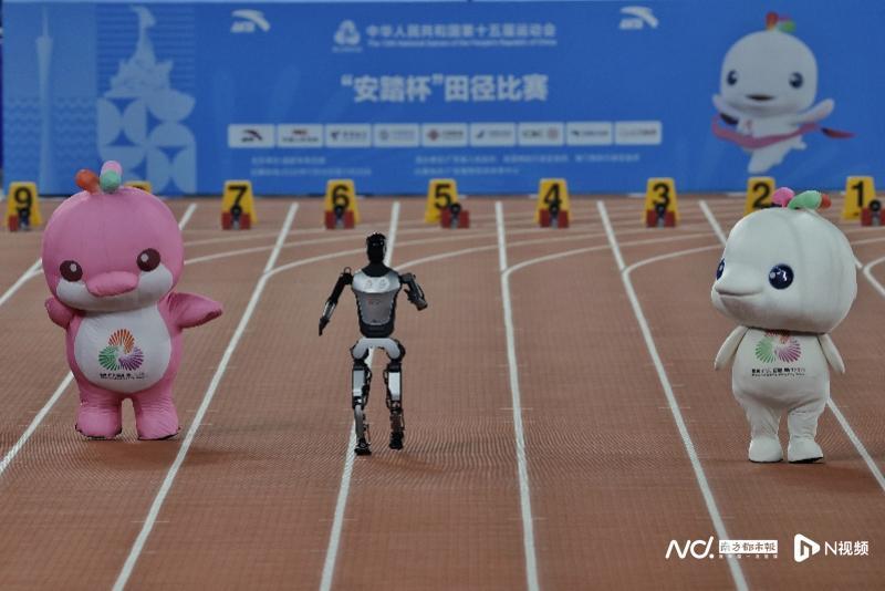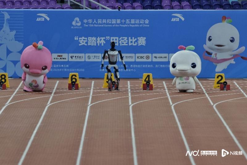 11月17日晚,广东奥体中心田径赛场迎来第十五届全运会田径比赛的焦点时刻——当晚将决出男女100米金牌。在这场备受瞩目的“飞人大战”前夕,赛场迎来了一场别开生面的暖场表演:十五运会吉祥物与智能机器人展开了一场趣味横生的百米竞速赛,为观众提前点燃了竞技激情。