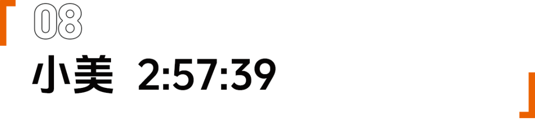 直到37公里后,小美寻思自己也跑不进255了,那不如上个厕所再跑,保底起码能破三,但是她没想到最终的完赛成绩距离自己的PB只差了1秒钟。她笑说,回想起来,自己上的厕所里她是第一个,里面的卷纸都是新的、粘着的撕不开。想想自己撕纸还撕了好几秒,有种好笑的心痛感。