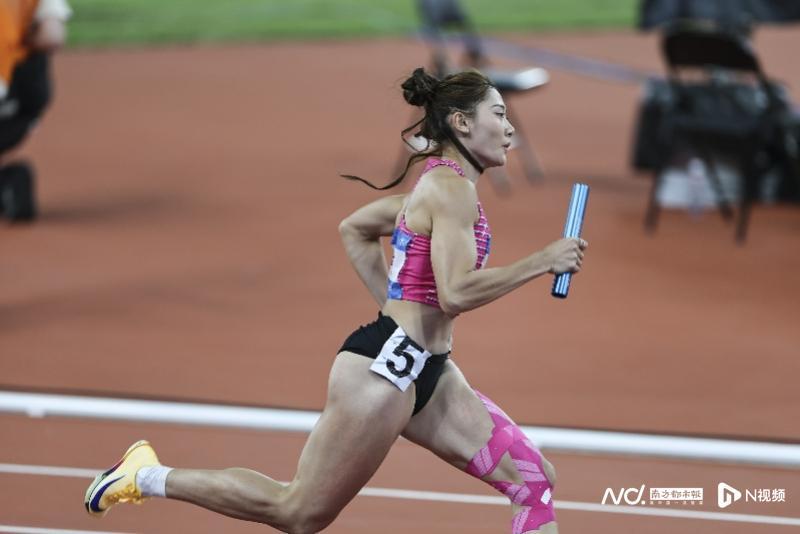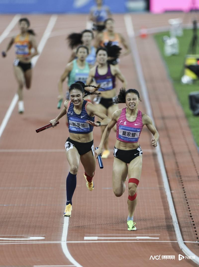 比赛进程扣人心弦:首棒梁宝棠以稳定发挥开启征程,与第二棒孔莹蓥完成流畅交接。第三棒何宇持续保持速度优势,最终将接力棒交至莫家蝶手中。此时四川队主力刘英兰正全力追赶,全场观众屏息凝神注视着这场终极对决。