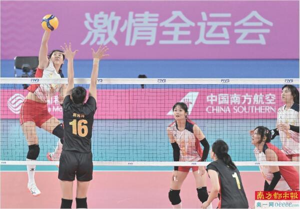 11月11日,排球女子20岁以下组小组赛A组比赛在江门火热进行。年轻选手们在赛场上展现出的顽强斗志与团队协作精神,成为全运会赛场上一道亮丽的风景线。