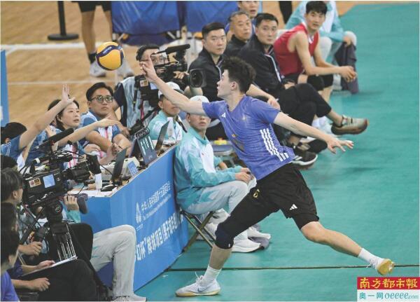 11月8日,排球男子成年组小组赛中,上海队球员卞世杰飞身跑到场边救球。这一惊险瞬间不仅展现了运动员的拼搏精神,也点燃了现场观众的热情。