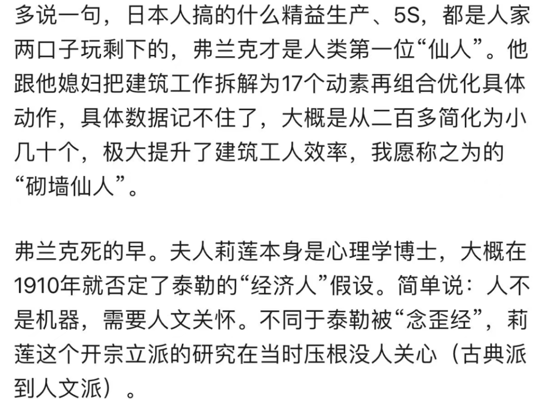 当然,吉尔布雷斯夫妇也很厉害,他们提升了管理学水平。
