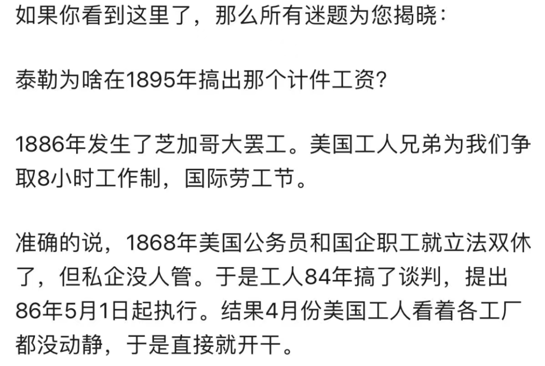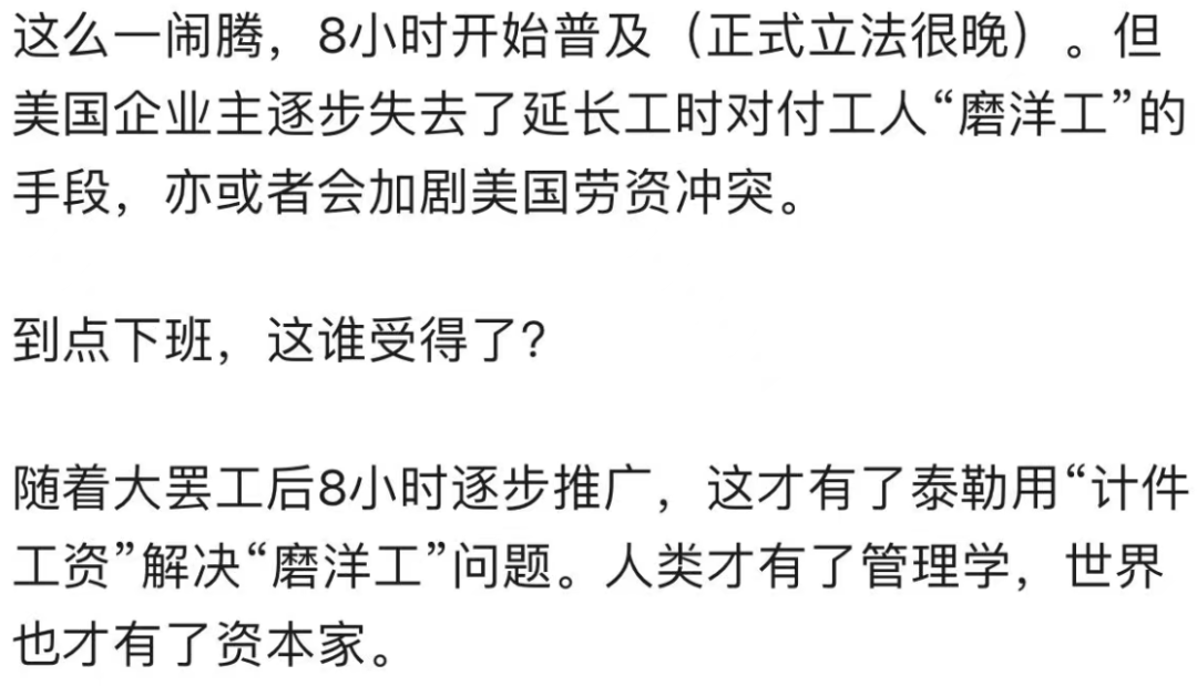 小飞兔大神的逻辑真的特别清晰,他没有一开始就讲工作福利,而是从管理学的来源,也就是从计件工资制讲起。