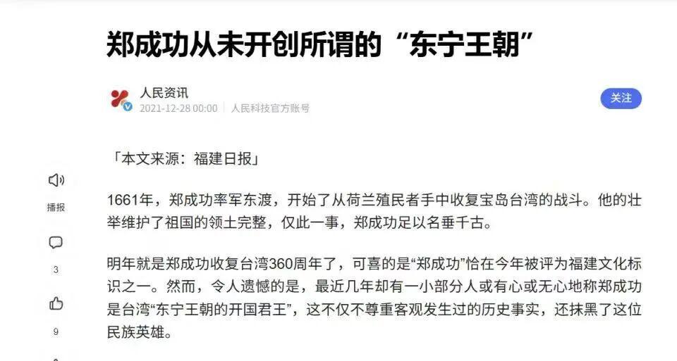 此外,关于“东宁王国”或“东宁政权”的概念,实则与我国的“两岸政策”相悖。