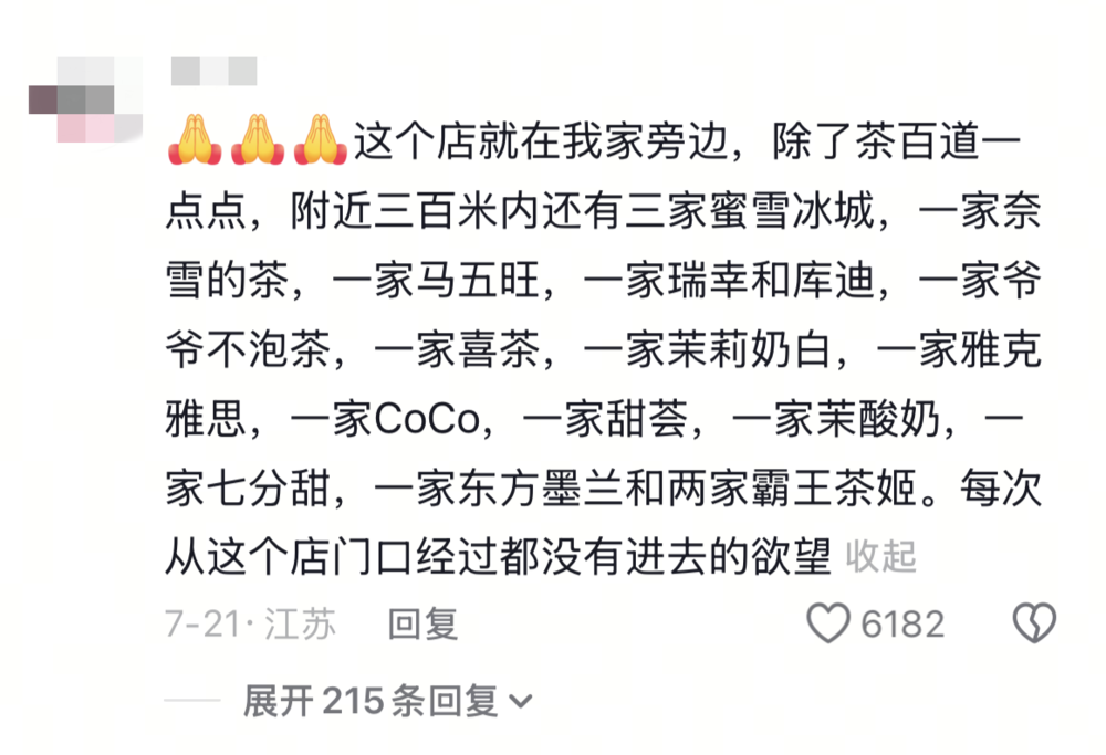 许先生告诉我,奶茶被资本市场垄断后,已经和普通老百姓创业糊口没关系了:“现在奶茶加盟基本是重灾区,全国奶茶品牌闭店率非常高,基本没法干了,大品牌的市场占有率太高,小品牌基本挤不进去。大品牌咱们个体经营者又加盟不了,小品牌干一个倒一个。”