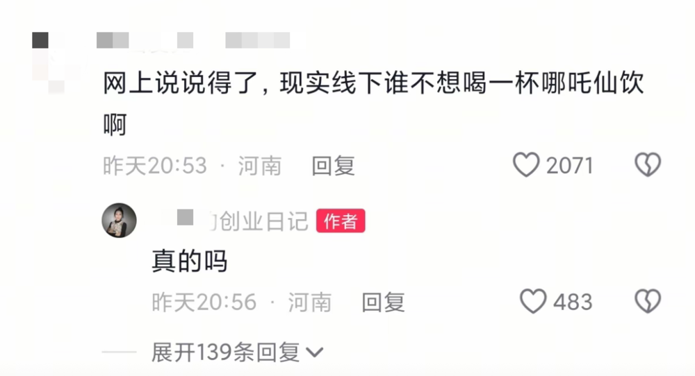 各地留子们也在评论区玩梗:等我回国一下飞机,就去喝一杯哪吒x饮。