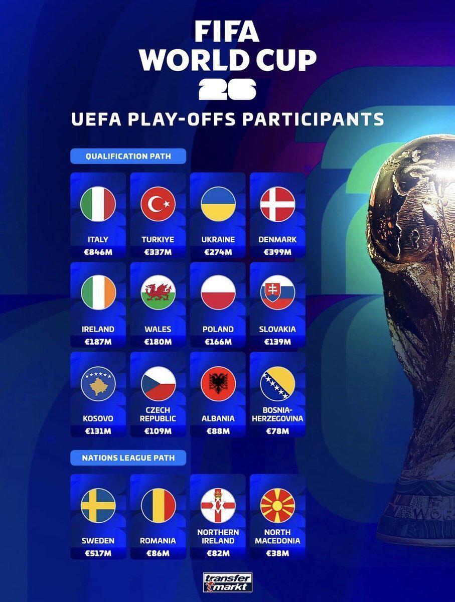 欧洲区附加赛和洲际附加赛将成为决定最后6个世界杯名额的关键战场。