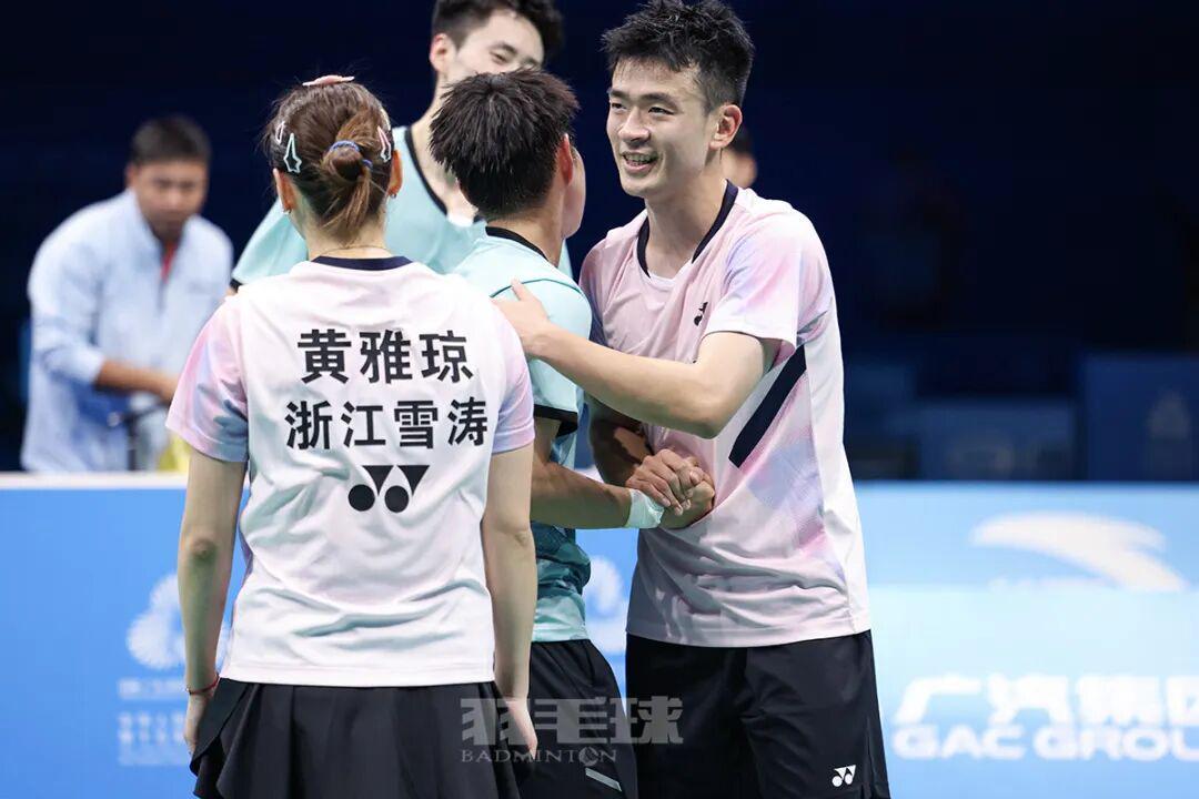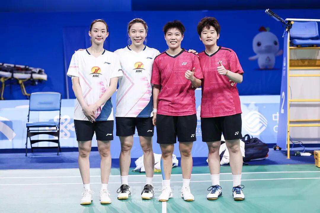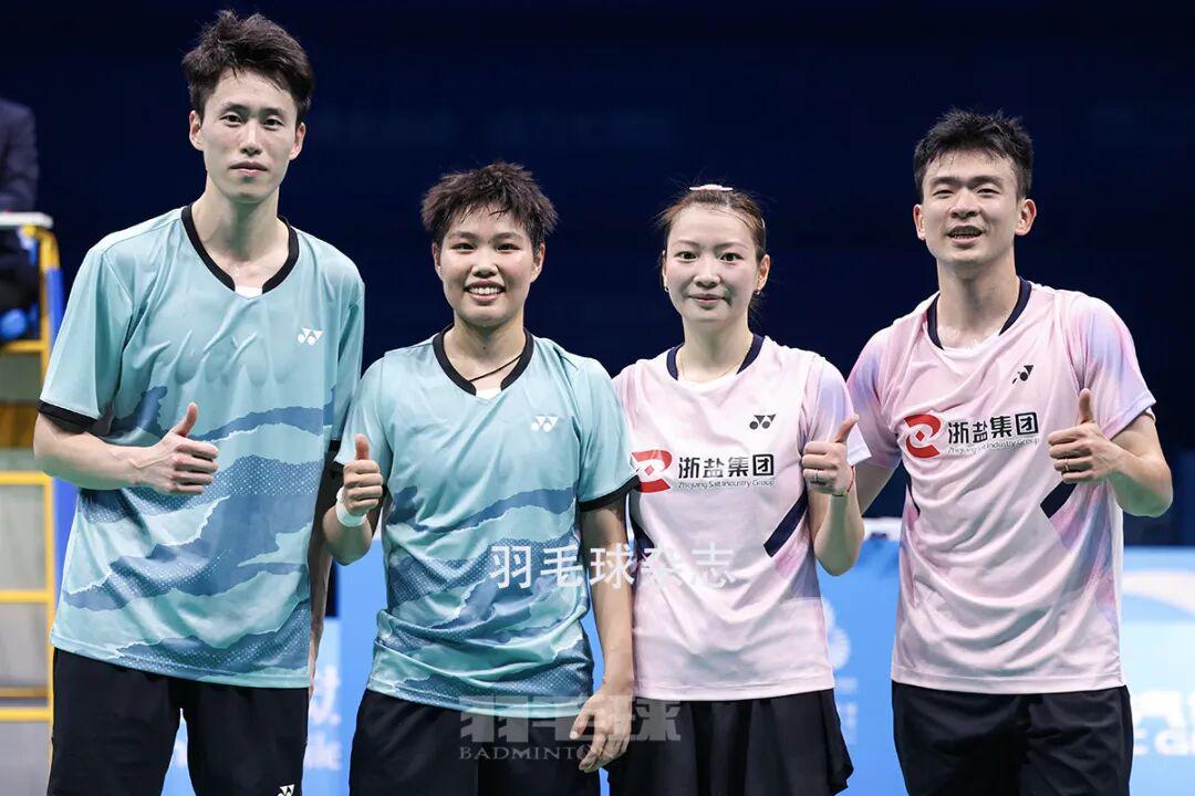 另一张照片,是黄东萍、欧烜屹与郑思维、黄雅琼的合影。他们联手奉献过无数场混双赛场的“神仙对决”,共同书写着国羽混双历史的辉煌篇章。