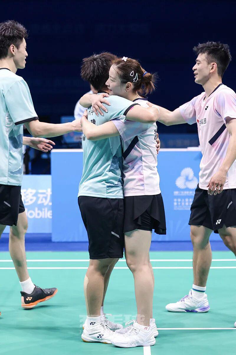 在十五运会的羽毛球赛场上,一个温馨的画面不断上演:每当比赛结束,选手们总会自发地聚在一起,用合影定格这段难忘的旅程。而在这些合影中,黄东萍的身影频繁出现。这不仅因为她双线作战,更因为她与队友们之间,有着超越胜负的深厚情感。