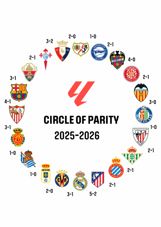 “胜负闭环”(Circle of Parity),这一源自美国国家橄榄球联盟(NFL)的独特概念,如今已跨越重洋,在欧洲足坛掀起热潮。它不仅是对竞技水平的高度概括,更以数学逻辑揭示了“联赛之内,人人皆可战胜对手”的深刻内涵。而在众多欧洲联赛中,西甲联赛(LALIGA EA Sports)本赛季的表现尤为抢眼,提前完成了这一壮举,成为平衡竞争的典范。