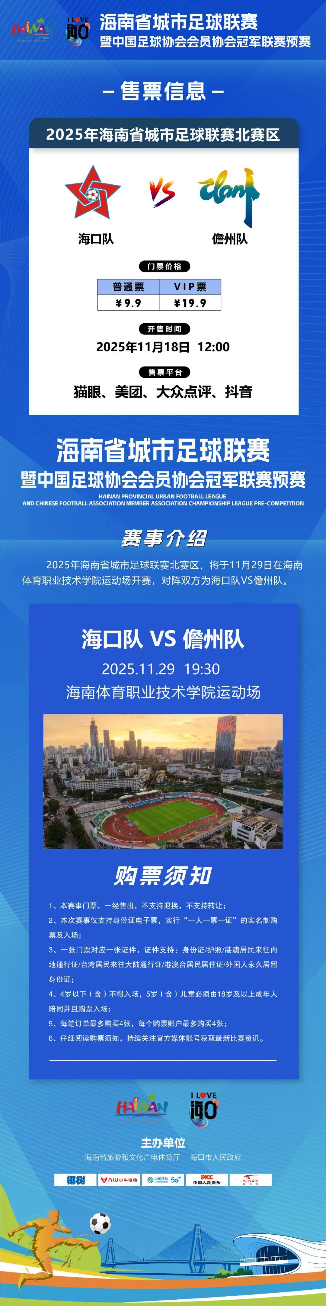 这个十一月,海南足球迷的狂欢时刻即将到来!11月29日,由海南省旅游和文化广电体育厅与各市县人民政府共同主办的海南省城市足球联赛暨中国足球协会会员协会冠军联赛预赛,将在海口正式拉开战幕!