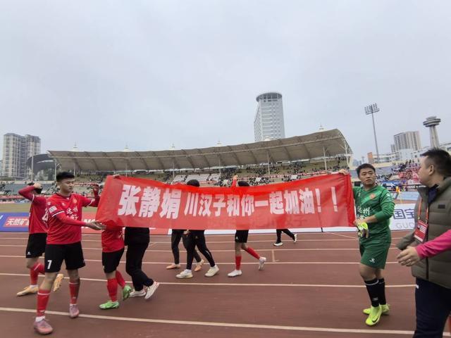 比赛终场哨响,胜负尘埃落定,但赛场的温情却在这一刻达到了顶峰,达州川汉子队的球员们特意与张静娟一起合影留念,球员们还共同拉起一条写有“张静娟,川汉子队和你一起加油”的横幅,用响亮的呐喊为她送上鼓励。这一刻,赛场的热血与人间的温情紧紧相连,也让这份双向的支持与奔赴,显得格外动人。