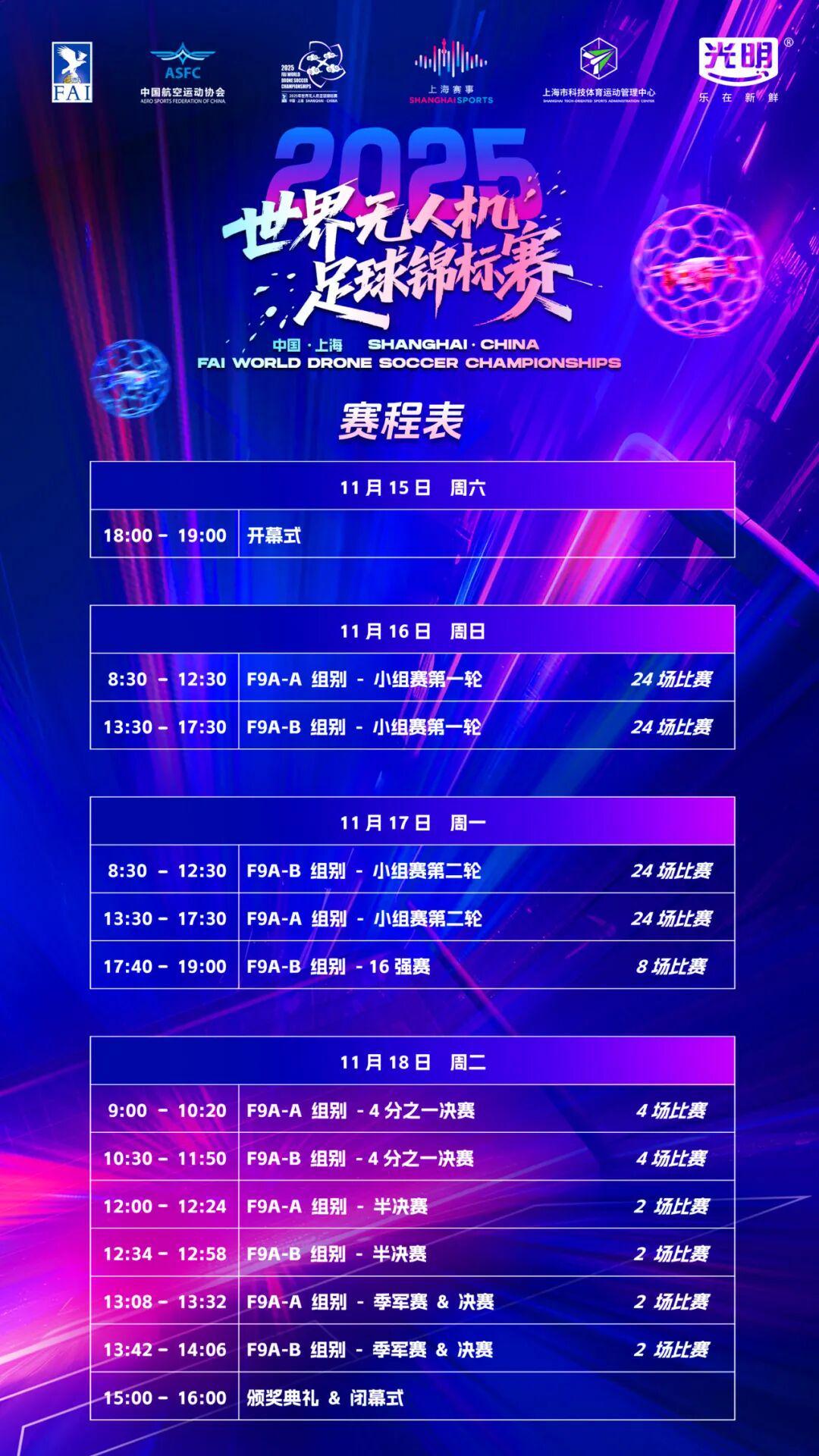 在F9A-A比赛中,18支参赛队伍集体亮相,他们被精心划分为四个小组,每组将通过两轮激烈争夺,决出两个宝贵的出线名额。比赛现场,无人机在空中灵活穿梭,精准传球、激烈对抗,引得观众阵阵喝彩。