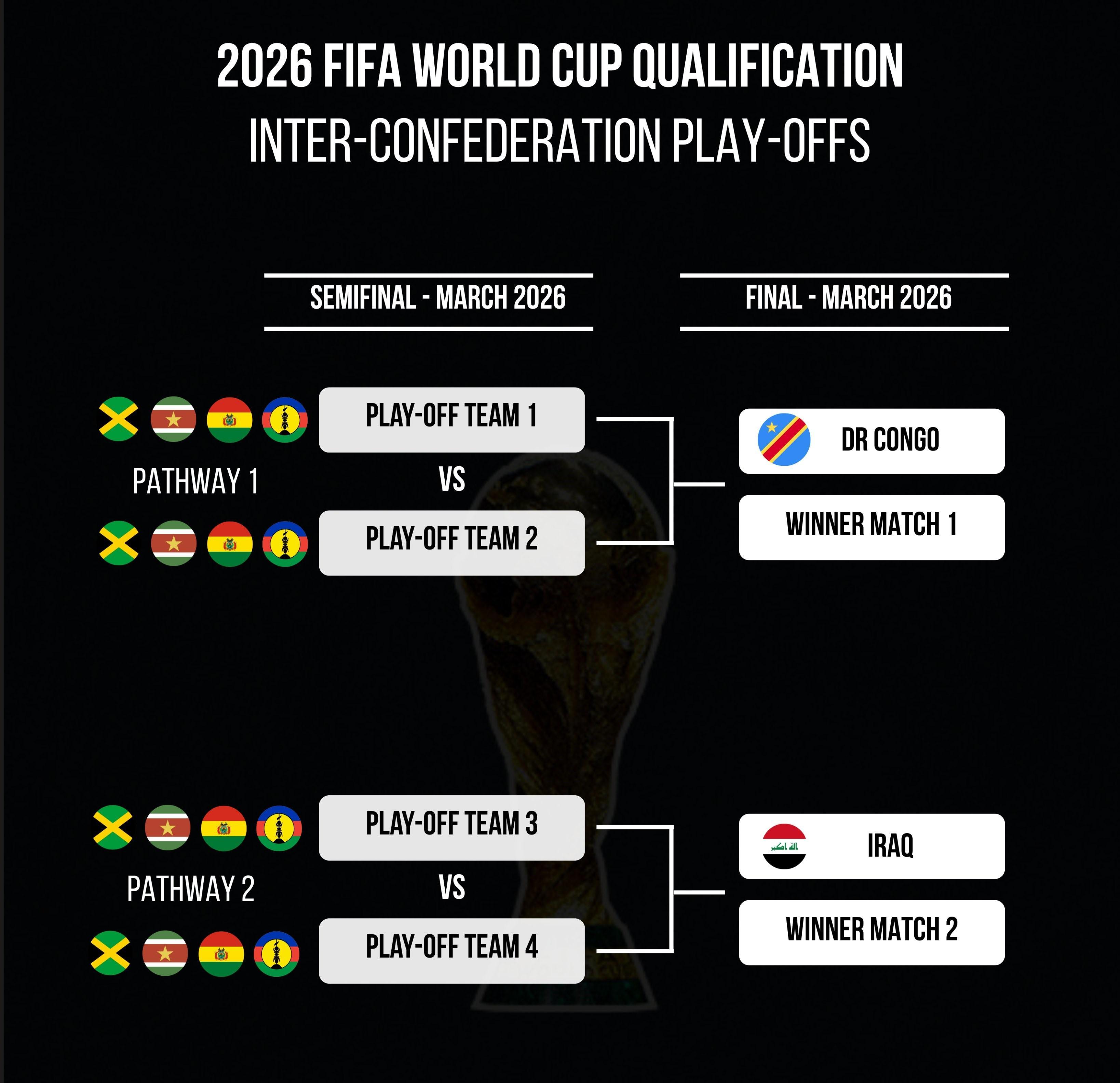 随着2026年世界杯各大洲预选赛的全面收官,备受瞩目的洲际附加赛名额分配及种子队归属终于尘埃落定。根据国际足联最新公布的规则,六支参与附加赛的球队中,FIFA排名靠前的伊拉克(第57位)与民主刚果(第60位)凭借显著优势,成功锁定种子队席位,直接晋级附加赛决赛阶段。