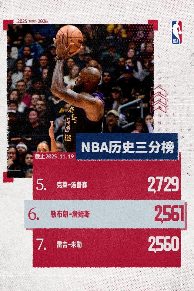 作为联盟史上首位出战职业生涯第23个赛季的球员,詹姆斯此役显得颇为轻松。他将得分的重任交给了年轻球员,自己则更多地扮演组织者和防守者的角色。全场仅出手7次的他,却命中了2记三分球,轻松拿到11分,并顺手完成了在历史三分榜上对雷吉-米勒的超越。