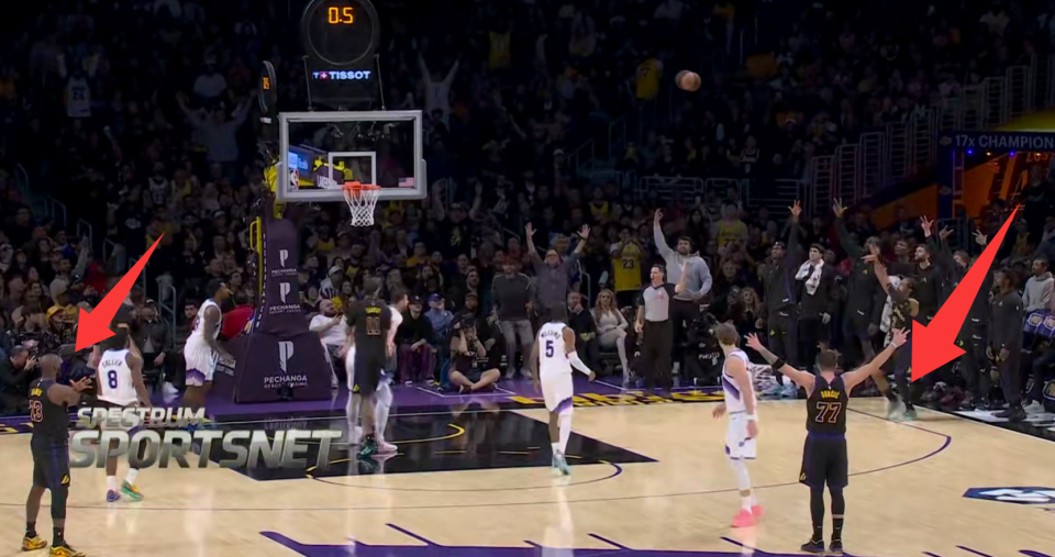 这个传球最惊艳之处在于时机掌控——当文森特刚被换上场手感冰凉时,詹姆斯依然选择信任队友。在最后2秒的生死时刻,勒布朗没有选择自己强攻,而是用四两拨千斤的方式激活全队。更令人惊叹的是,在文森特出手的瞬间,詹姆斯与东契奇几乎同时做出庆祝动作,这种对队友的绝对信任,正是冠军球队的DNA。