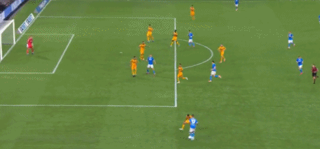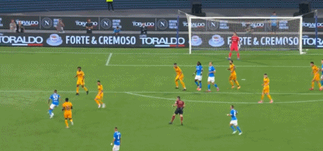 意大利国脚斯皮纳佐拉在禁区弧顶处打出精彩低射,皮球贴地窜入死角,那不勒斯2-1再度领先。