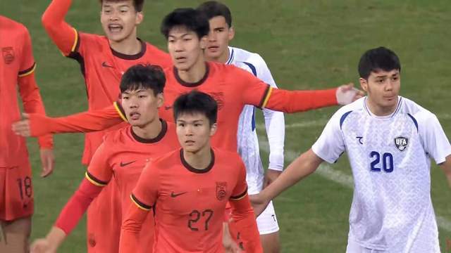 比赛刚开始仅30秒,毛伟杰便制造了对手的一次犯规,展现了U22国足的积极态度。乌兹别克斯坦U22是三个对手中身体对抗最为强劲的球队。安东尼奥连续三场都排出了五后卫的阵型,以确保防守端的稳健。比赛进行到第21分钟,蒯纪闻前场压迫,迫使乌兹别克斯坦后卫传球失误,但对手门将及时出击化解了危险。U22国足踢得十分耐心,五后卫防线密不透风,对手在禁区外的几脚远射均无功而返。