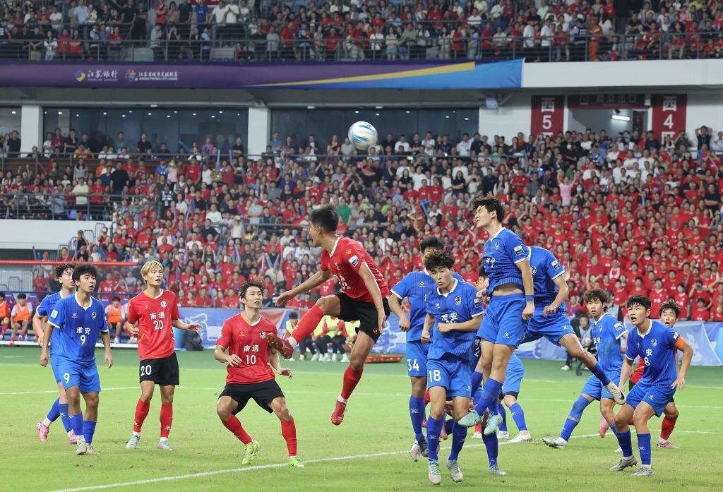 9月20日,江苏南通,2025江苏省城市足球联赛第12轮,南通Vs淮安。视觉中国 图