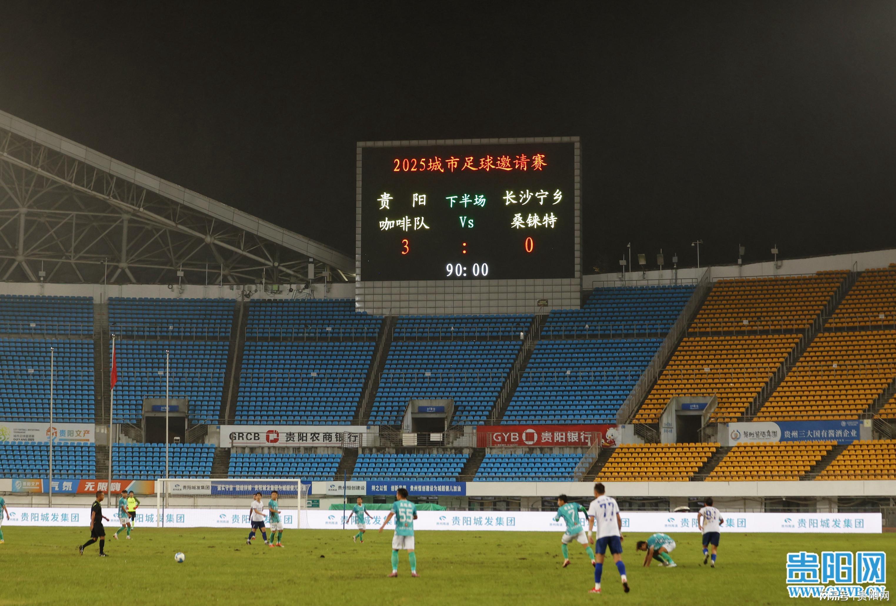 贵阳网·甲秀新闻讯 9月23日,2025城市足球邀请赛1至8名1/4淘汰赛在贵阳奥体中心火热展开。主场作战的贵阳咖啡队凭借出色发挥,以3:0战胜长沙宁乡市桑铼特足球队,顺利挺进四强。