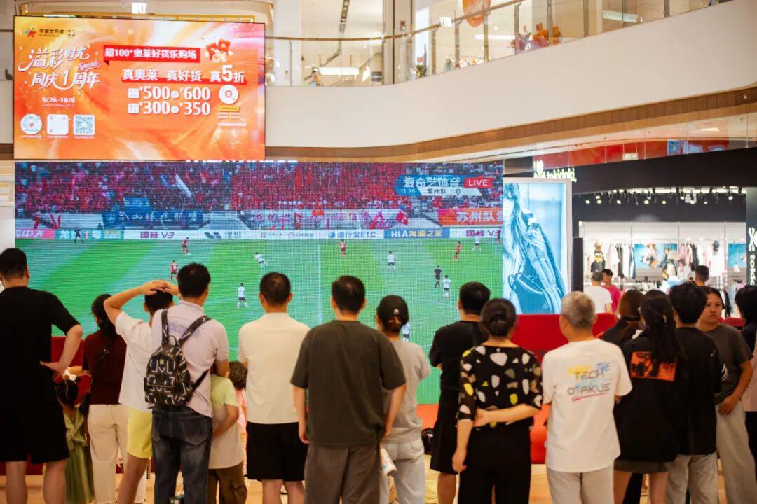比赛前一小时,昆山奥体中心周边商场的“第二观赛区”已座无虚席,无票市民通过大屏直播静候开场;有票观众则携老带幼,涌向体育场。红绿灯路口,行人猜测比分;电瓶车后座的孩子讨论“今日对阵”;身着“苏州”“常州”球衣的球迷相遇时相视一笑;小贩卖力吆喝,检票员微笑喊出“加油”——这些细节勾勒出苏超独有的烟火气。