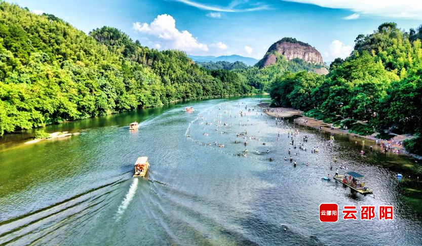 新宁县崀山风光旖旎,夫夷江上游筏穿梭,游人如织,宛如一幅浑然天成的画卷。颜克明 摄