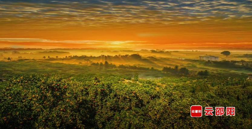 晨曦中的雪峰蜜橘园。滕治中 摄