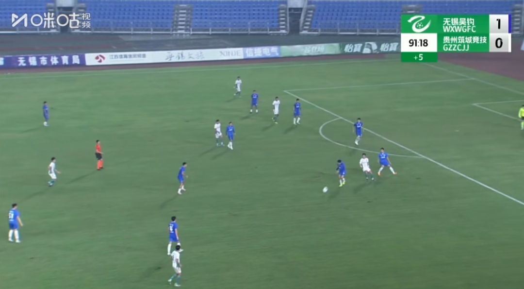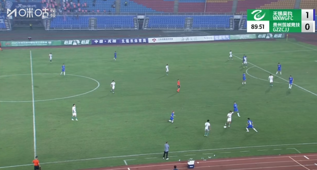 上半场,双方展开了一场势均力敌的较量,攻防转换节奏极快,都创造出了不少有威胁的进攻机会。然而,无论是无锡吴钩的犀利突破,还是贵州筑城竞技的稳健防守,都未能打破场上的僵局。直到中场休息时,比分依旧定格在0:0,双方球员带着略显遗憾的心情回到更衣室,为下半场的比赛做最后的准备。
