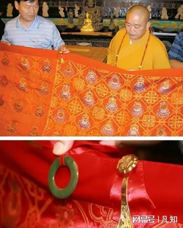 但是释永信穿的则是价值16万的“云锦真金八吉祥宝莲纹妆花缎袈裟”