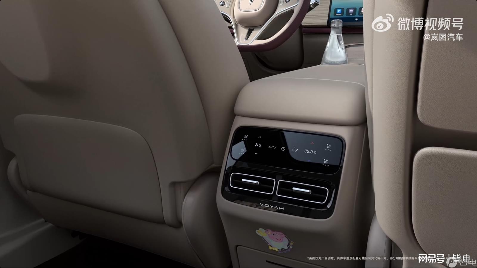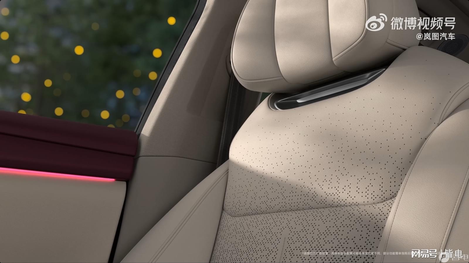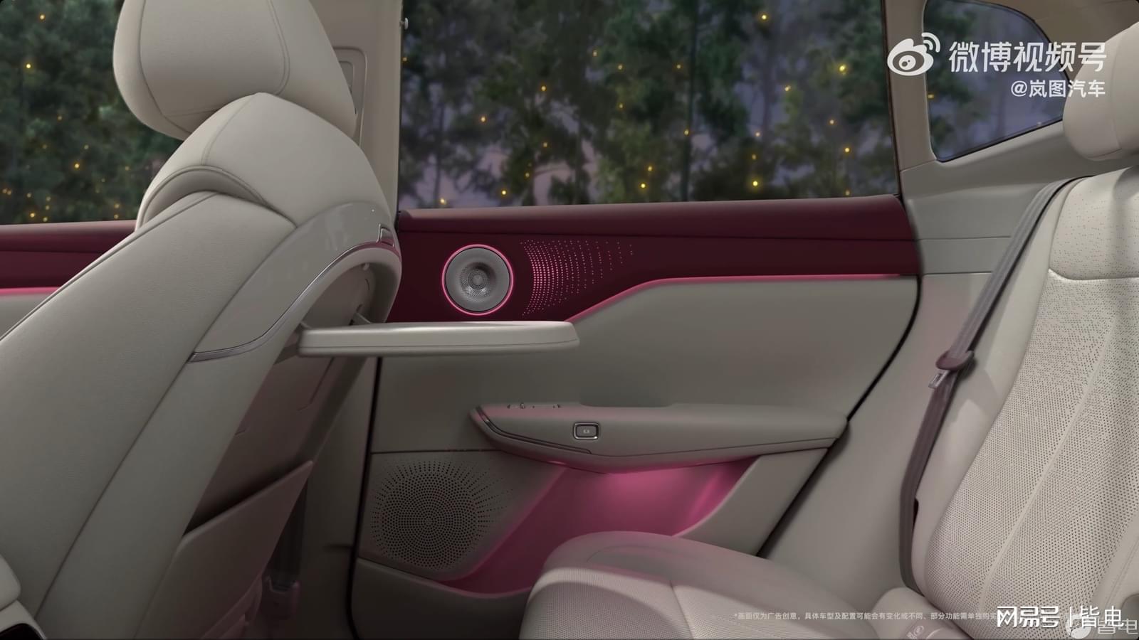 后排配置同样亮点十足。新款岚图知音将在后排配备小桌板以及独立的空调温区控制功能,同时搭载车载冰箱,满足用户多样化需求。车门扬声器边缘融入了氛围灯设计,灯光效果与座舱风格相呼应,营造出精致的驾乘环境。