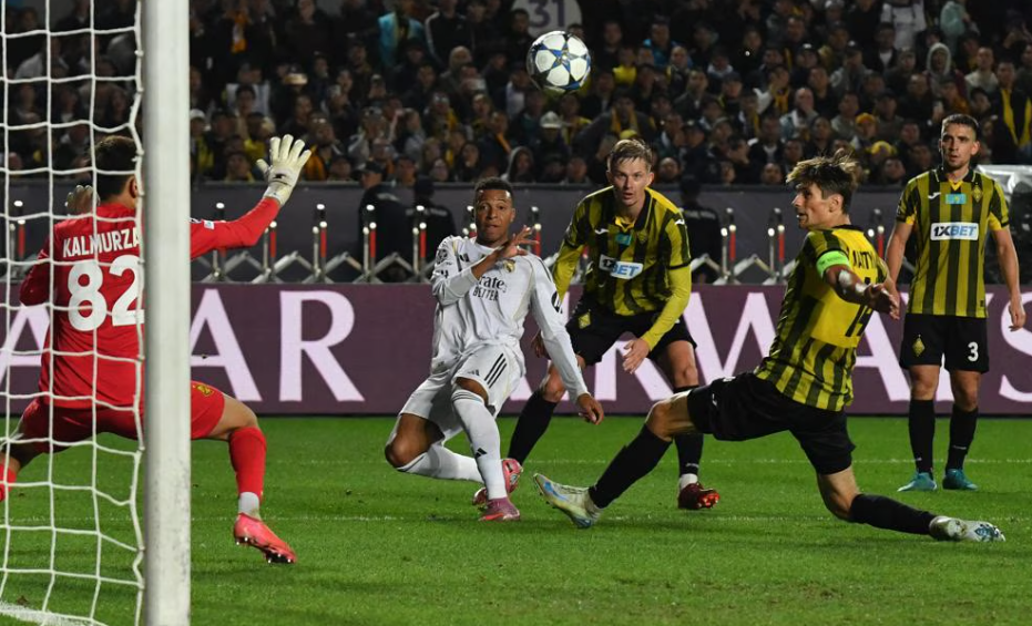 比赛中,皇马凭借实力优势完全掌控了比赛节奏。第23分钟,马斯坦托诺在禁区内被对方门将放倒,主裁判判罚点球,姆巴佩主罚命中,皇马1-0领先,并超越了拜仁,以64个点球加冕欧冠获得点球最多的球队。下半场,皇马利用对方球员体能下降的机会,进攻端火力全开,姆巴佩再进两球完成帽子戏法,卡马文加、迪亚斯也各进一球,最终皇马5-0大胜凯拉特,取得开局2连胜。