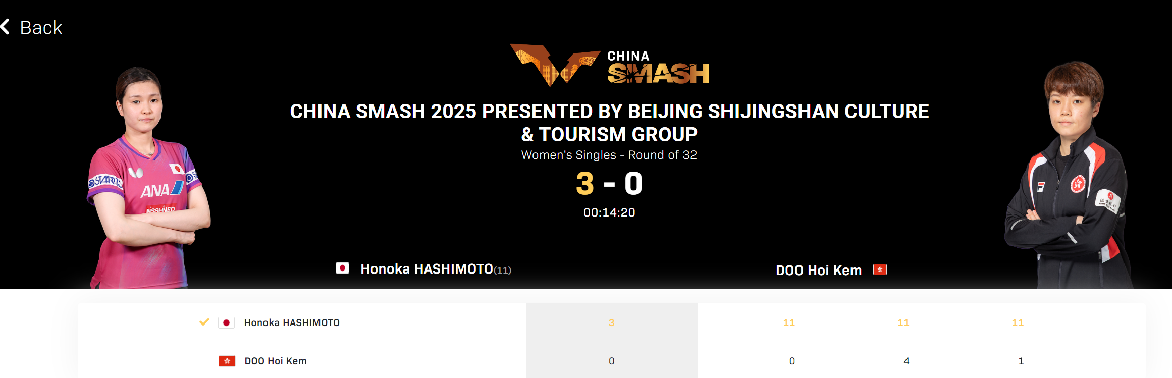 北京时间9月30日,WTT北京大满贯女单1/16决赛上演了一场令人瞠目结舌的对决。日本选手桥本帆乃香以3-0的绝对优势横扫中国香港名将杜凯琹,三局比分分别为:11-0、11-4、11-1。令人难以置信的是,杜凯琹在这三局比赛中仅获得5分,且首局更是以0分告负,桥本帆乃香的强势表现无疑给观众留下了深刻印象。