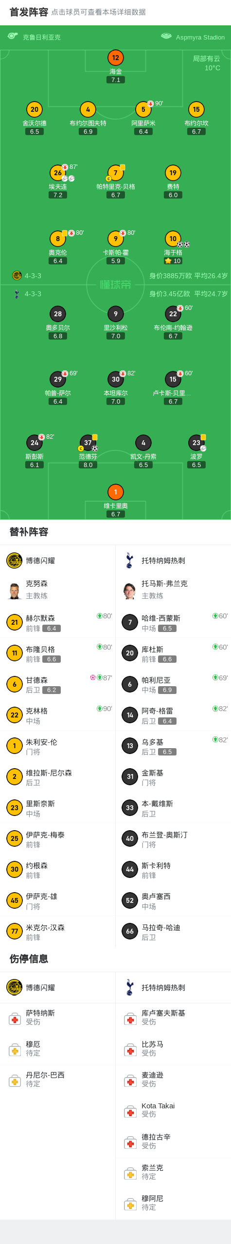本场比赛,双方球员均展现出了高超的球技和顽强的斗志。技术统计方面,博德闪耀和热刺在控球率、射门次数等方面均不相上下,共同为球迷们奉献了一场精彩绝伦的比赛。