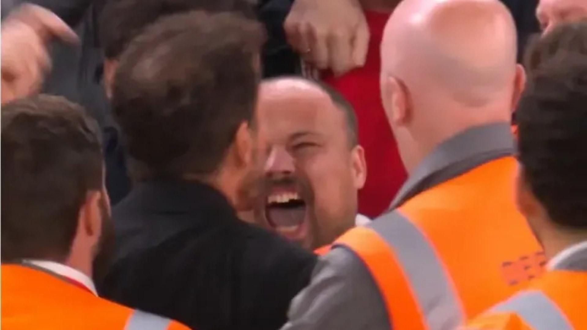 据现场情况及电视画面显示,马竞主帅西蒙尼在比赛过程中多次与位于教练席后方的利物浦球迷发生言语冲突。他两次试图走向看台方向与球迷理论,表达自己的不满,但均被安保人员和教练组成员及时拦下,避免了事态的进一步升级。尽管如此,主裁判马里亚尼还是直接出示红牌,将这位55岁的阿根廷主帅罚出了场外。