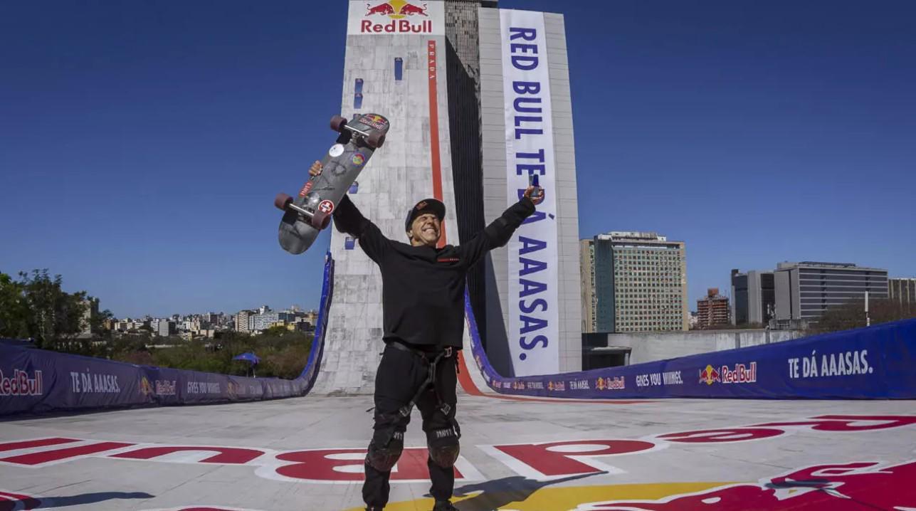 这位被誉为“巴西滑板教父”的勇士,从高达60米的起点出发,在下滑过程中速度飙升至惊人的103.8公里/小时,创造了在“临时四分之一管道”坡道上滑板最高下落高度(60米)和最快速度(103公里/小时)的两项新纪录。这一壮举,被命名为“红牛大楼滑降”,成为了极限运动史上的又一里程碑。