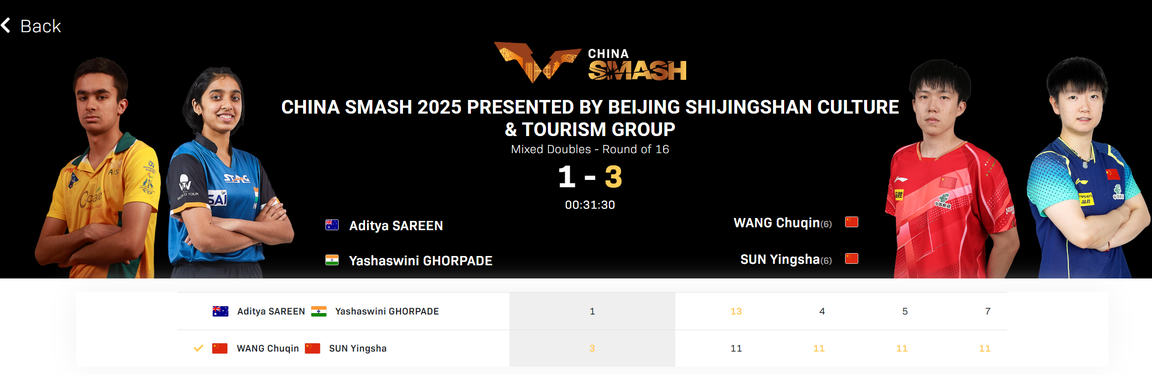 北京时间9月30日,WTT北京大满贯赛事迎来混双1/8决赛的激烈对决。备受瞩目的奥运冠军组合王楚钦/孙颖莎(莎头组合)以3-1的比分逆转战胜萨林/格尔帕德,成功晋级八强。四局比分分别为:11-13,11-4,11-5,11-7。莎头组合在大比分0-1落后的情况下,连扳三局,完成了精彩的让一追三。