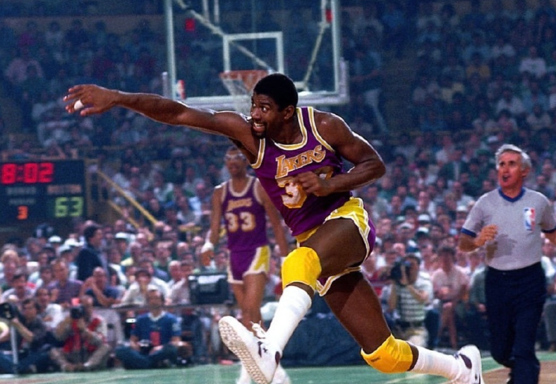 魔术师约翰逊的伟大,早已无需多言。他带领湖人队开启了show time时代,更在5次总决赛之旅中3次当选总决赛最有价值球员。在那个比赛节奏较慢、身体对抗较强的年代,能够拿下三双数据,无疑是一件值得登上头版头条的大事。