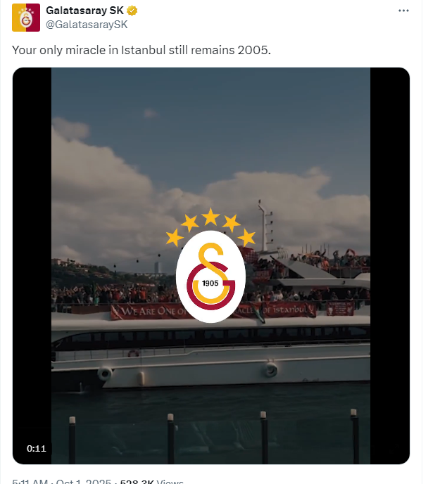比赛结束后,加拉塔萨雷队在社交媒体上发文,对利物浦进行了幽默的调侃:“在伊斯坦布尔的比赛里,你们唯一的奇迹仍然是在2005年。”这句话不仅回顾了利物浦在伊斯坦布尔的辉煌历史,也暗示了本场比赛利物浦未能再次创造奇迹。